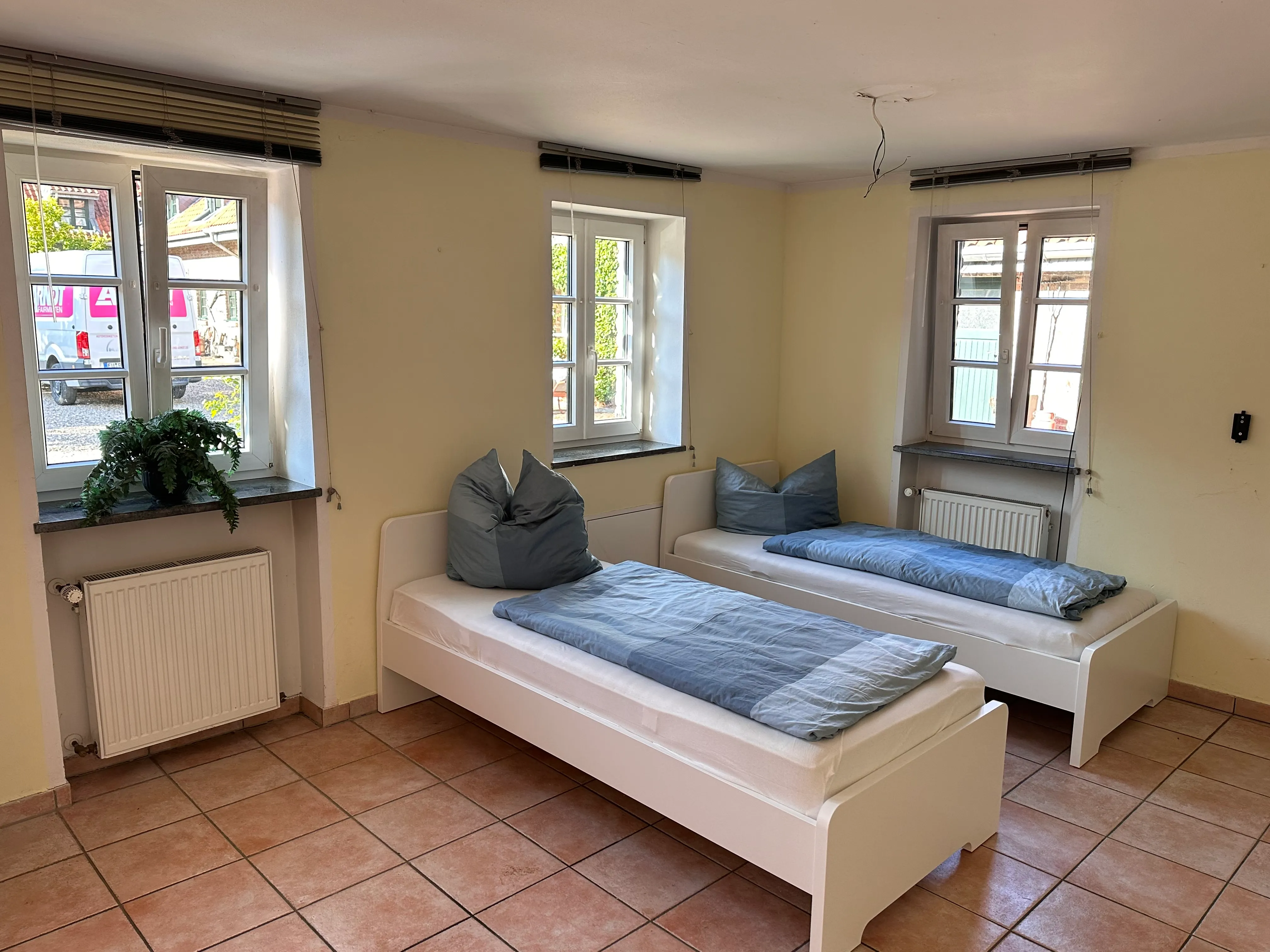 Das separate Schlafzimmer ist ebenfalls mit zwei Einzelbetten ausgestattet und sorgt damit für zusätzlichen Komfort. Hier finden bis zu zwei Personen ausreichend Platz und Ruhe für einen erholsamen Aufenthalt.