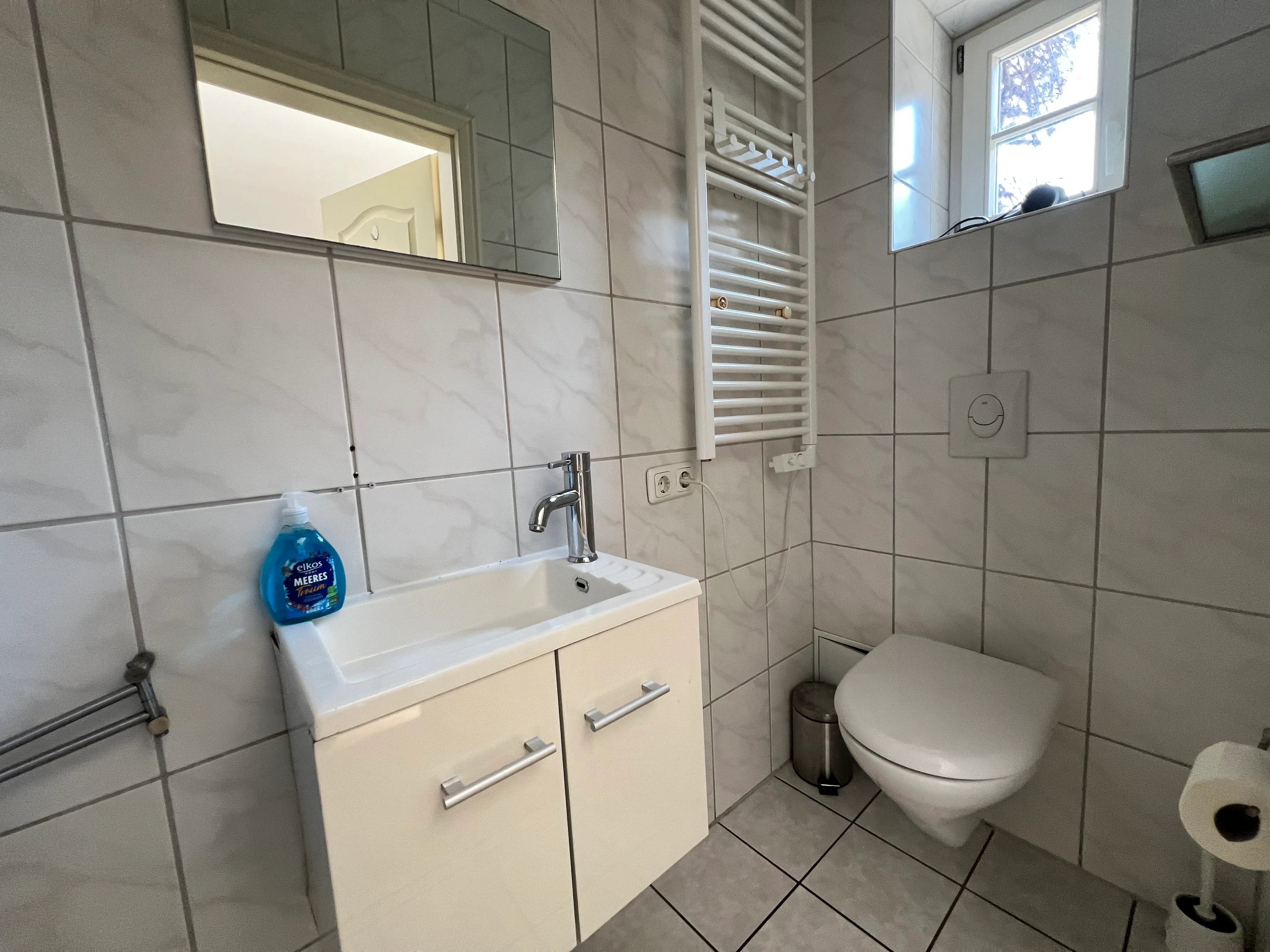 Das Badezimmer ist hell und praktisch eingerichtet und bietet eine Dusche, ein Waschbecken und ein WC. Damit stehen alle wichtigen Annehmlichkeiten für einen entspannten Aufenthalt zur Verfügung.
