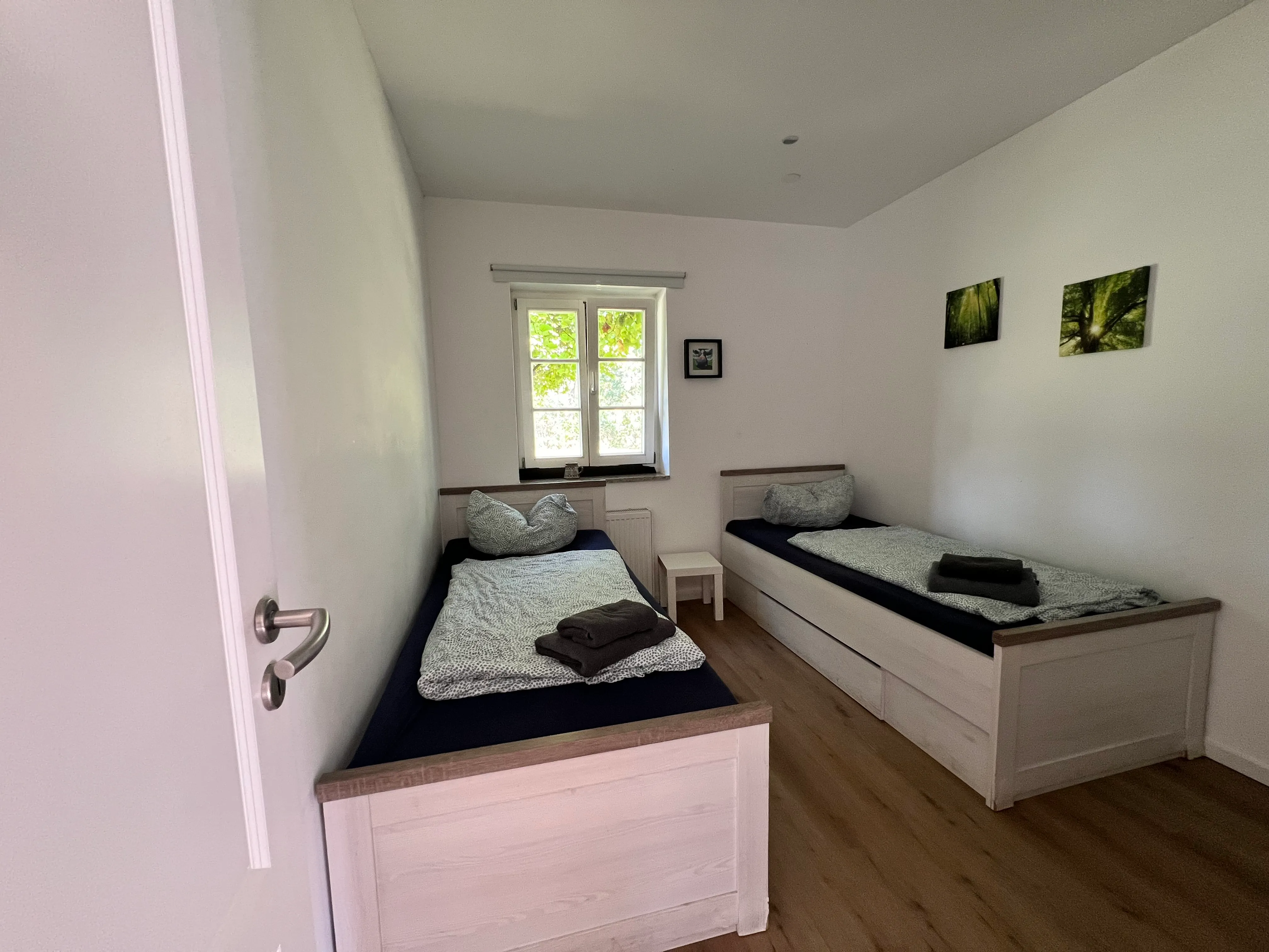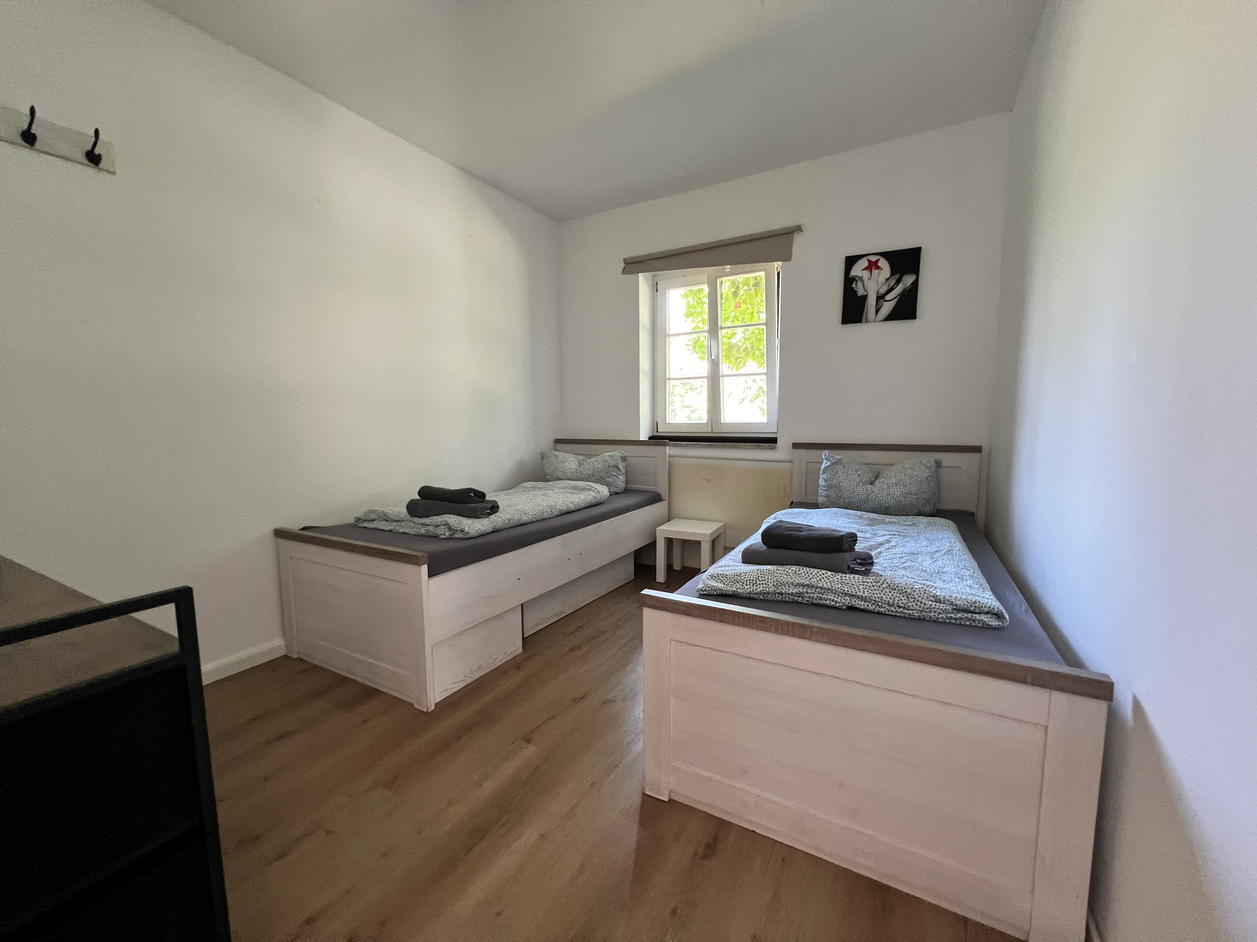 Das Apartment verfügt über zwei separate Schlafzimmer, die jeweils mit zwei Einzelbetten ausgestattet sind. Dadurch finden bis zu vier Gäste ausreichend Raum für erholsame Nächte und eine angenehme Privatsphäre.